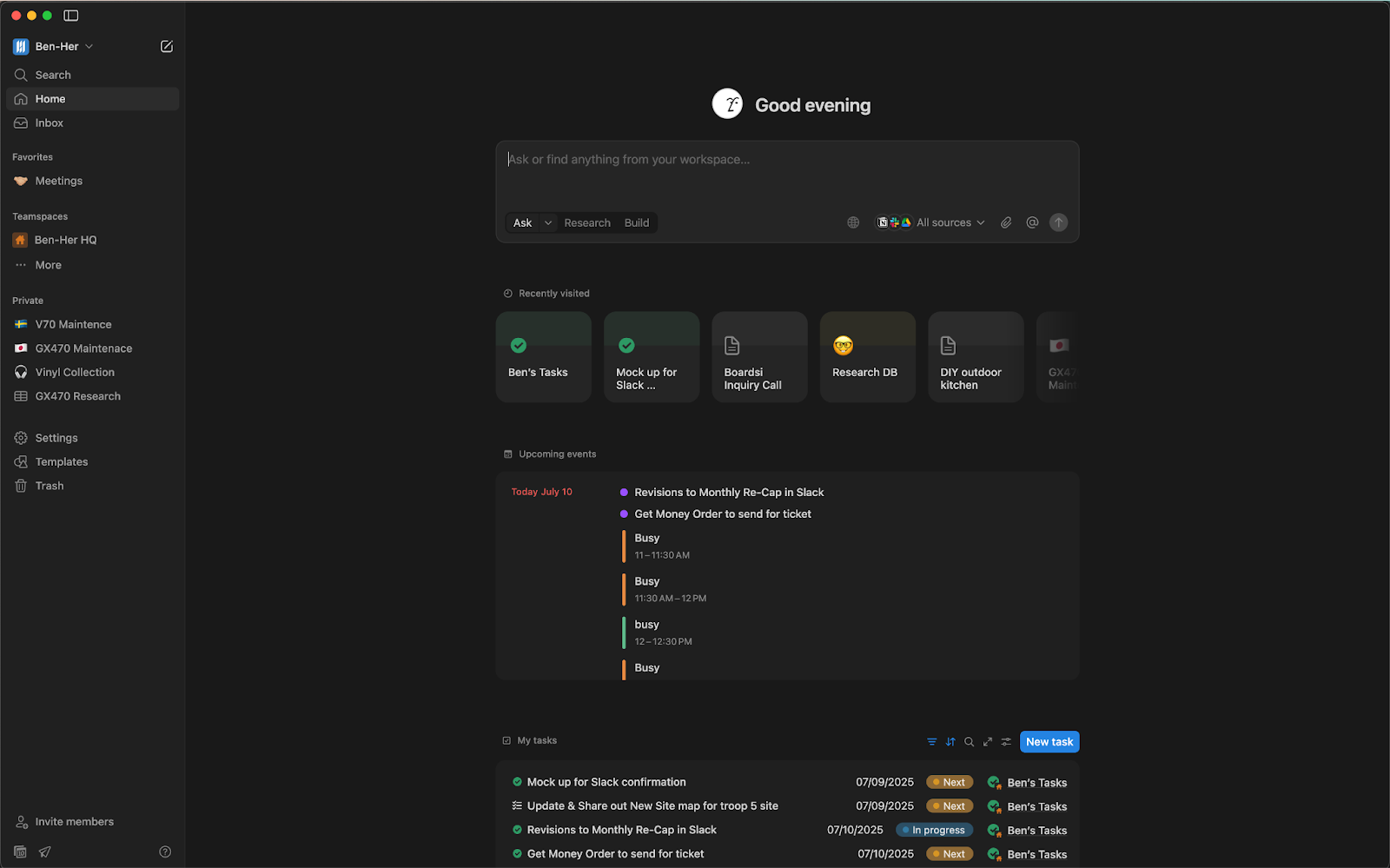 Notion has become my external brain, and I mean that literally. I've tried other tools before—spent months tinkering with Obsidian, building elaborate knowledge graphs and automation systems. But here's the thing: I'm only a "good-enough to be dangerous" developer. I'd inevitably hit technical walls when trying to create complex interactions with the tools I use most. The momentum would die, and I'd abandon yet another promising system.